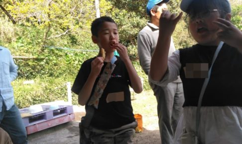 「竹の子初めて食べたんだけど、美味しかった。」 わざわざそう伝えてくれたある子。 竹の子フライを食べたのですが、 その顔は、驚きと新鮮な感じが入り混じった様な顔でした。 これは、かえるクラブAコースで、磯釣り&竹の子掘り…