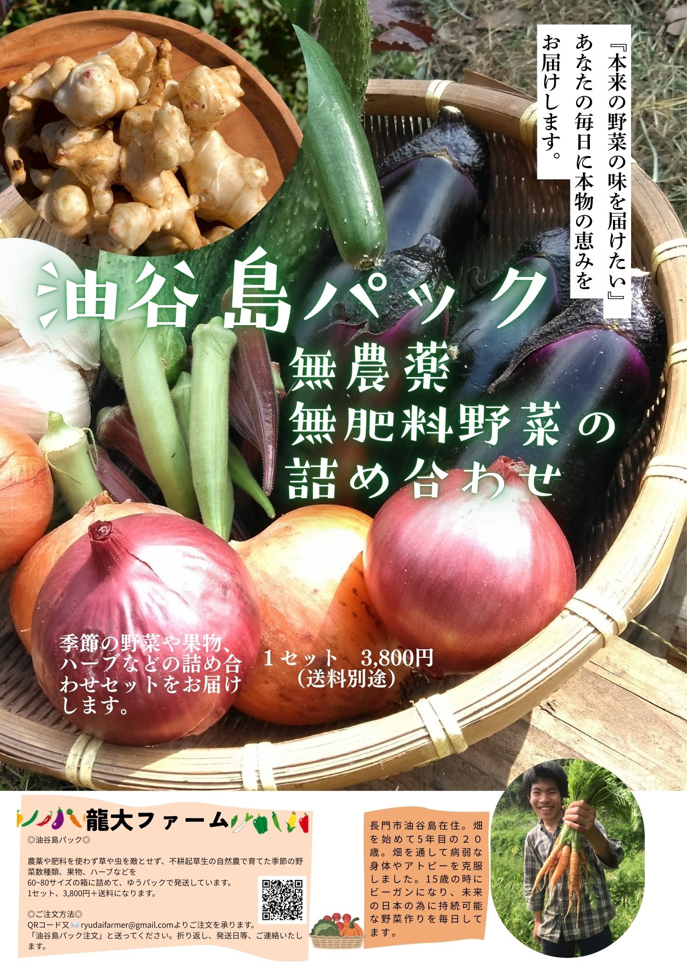 畑を始めてアトピー改善し体も強くなりました!! 健康にも環境にも優しい野菜の味を 是非、一度試してみてください。