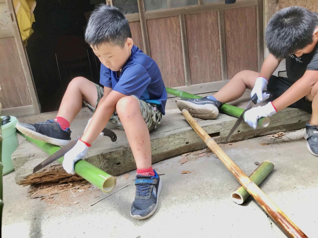 こちらも大人氣、たき火&キャンプファイヤー。最初は怖くても、必ずというほど、どの子も火の魅力に惹かれて、興味を示します。火は、きっと人間の本能を呼び覚ます効果があるのだと思います。昔の人の様に、火を使ってお風呂を焚き、ご飯も炊き、調理もします。もちろん、危険性もちゃんとお伝えしますので、ご安心ください。