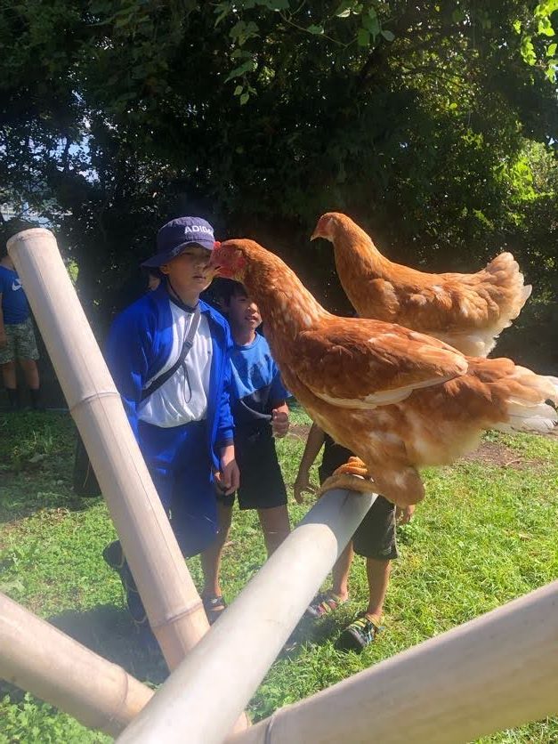 馬や犬やニワトリにふれあったことはありますか?馬をブラッシングしたり、エサやり体験できる機会があります(6月と9月)。また、かえる村で飼っている犬(ゴール♂)を散歩させたり、ニワトリにエサやりしたり、抱っこしたり。どの子もいい子ですので、かわいがってあげてくださいね。特にゴールは、人間が大好きですので。運が良ければ、ニワトリの産みたて卵にも出会えるかも。