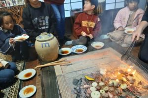 最後にアジの刺身を出したところ、子どもらが群がって来て、あっと言う間に無くなっていました。(今回はアジが大きかったから、刺身ができました。みんなラッキーだったね!)