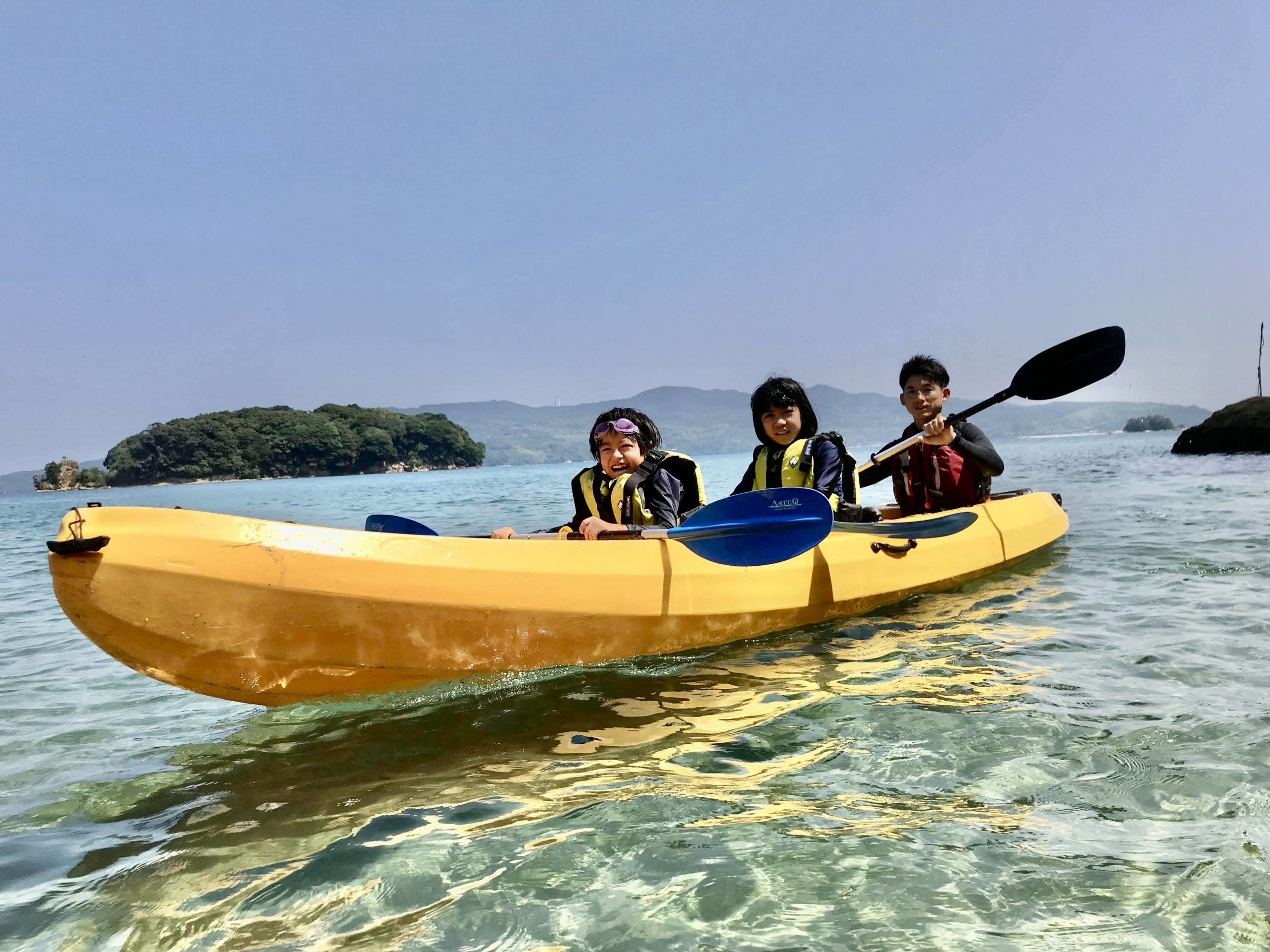 シーカヤックとは、海の上をスイスイこげるボートの様なもの。慣れれば、泳ぐより早く海の上を移動することができ、とっても氣持ちが良いです。海面すれすれを移動するため、海との距離も近く、体験したことがない子にとったら、特別素晴らしい体験になると思います。