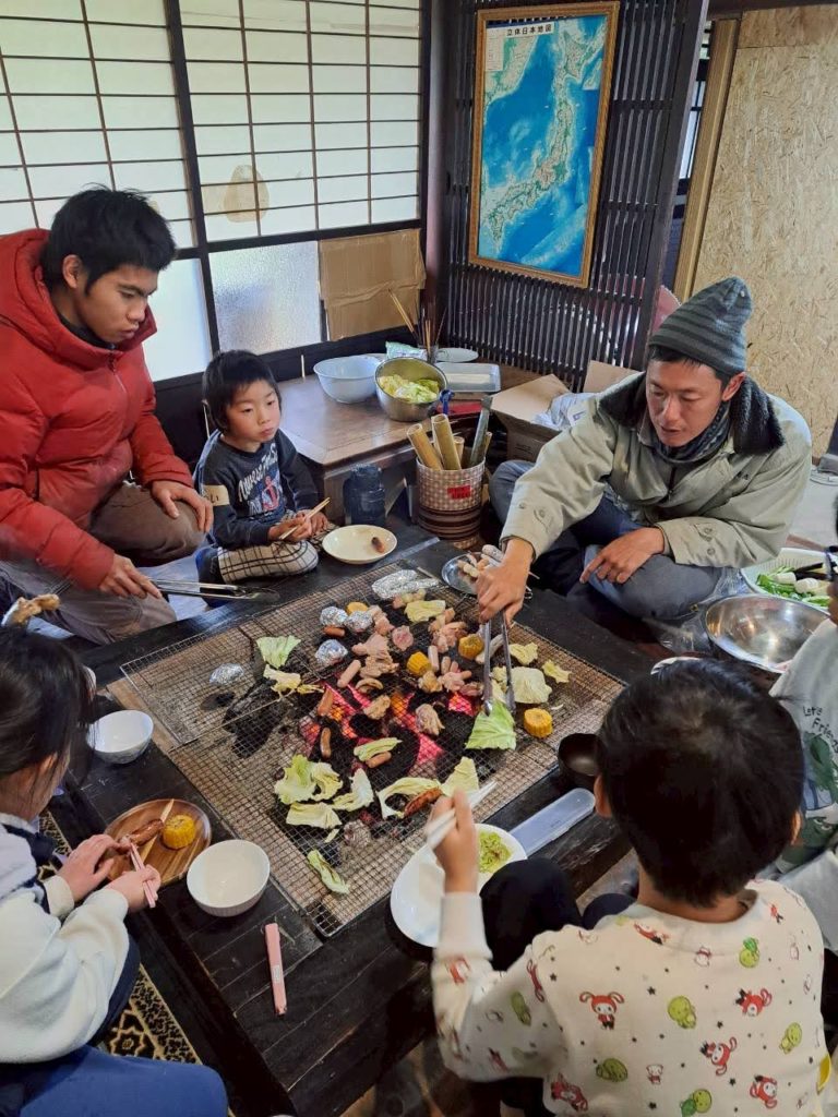 個人的には、いろりでBBQがたまらなく美味しかったのと、山で子どもら何人かと小枝を拾って、火起こしができるか実験したのが最高にいい時間でした。