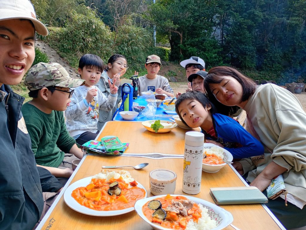 朝からカレーを作って昼ごはんで食べた後に、ひみつ基地を作るために山に登った時の話です。
