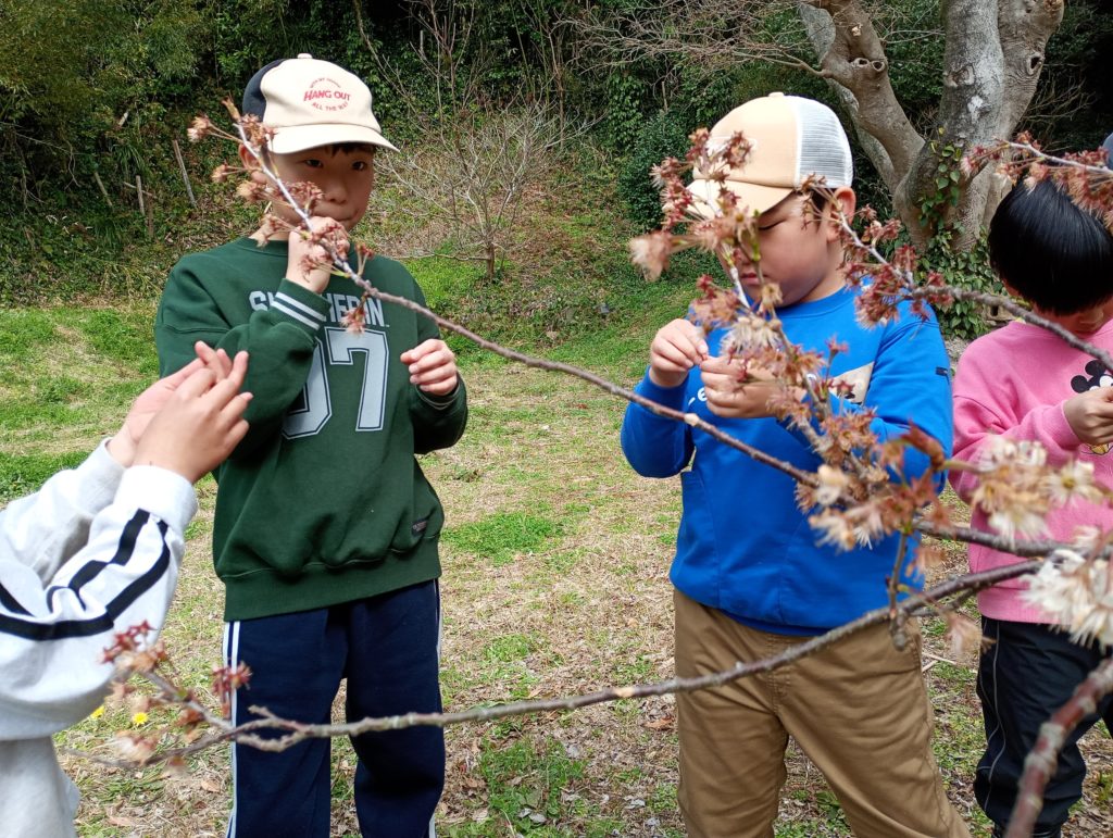 さくらんぼの花の蜜が美味しいと、男子数人がこぞって花の蜜をチューチュー吸っていたり